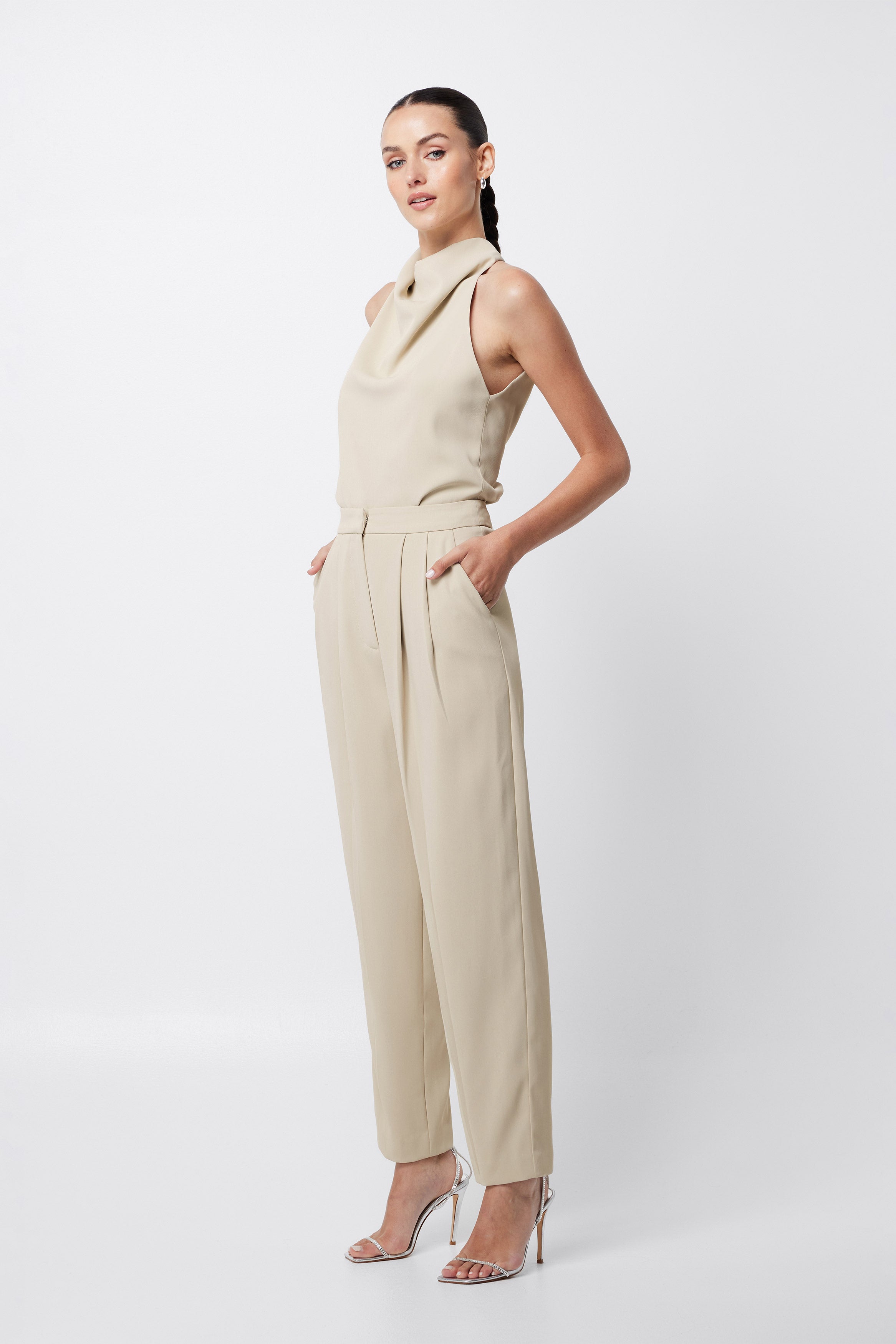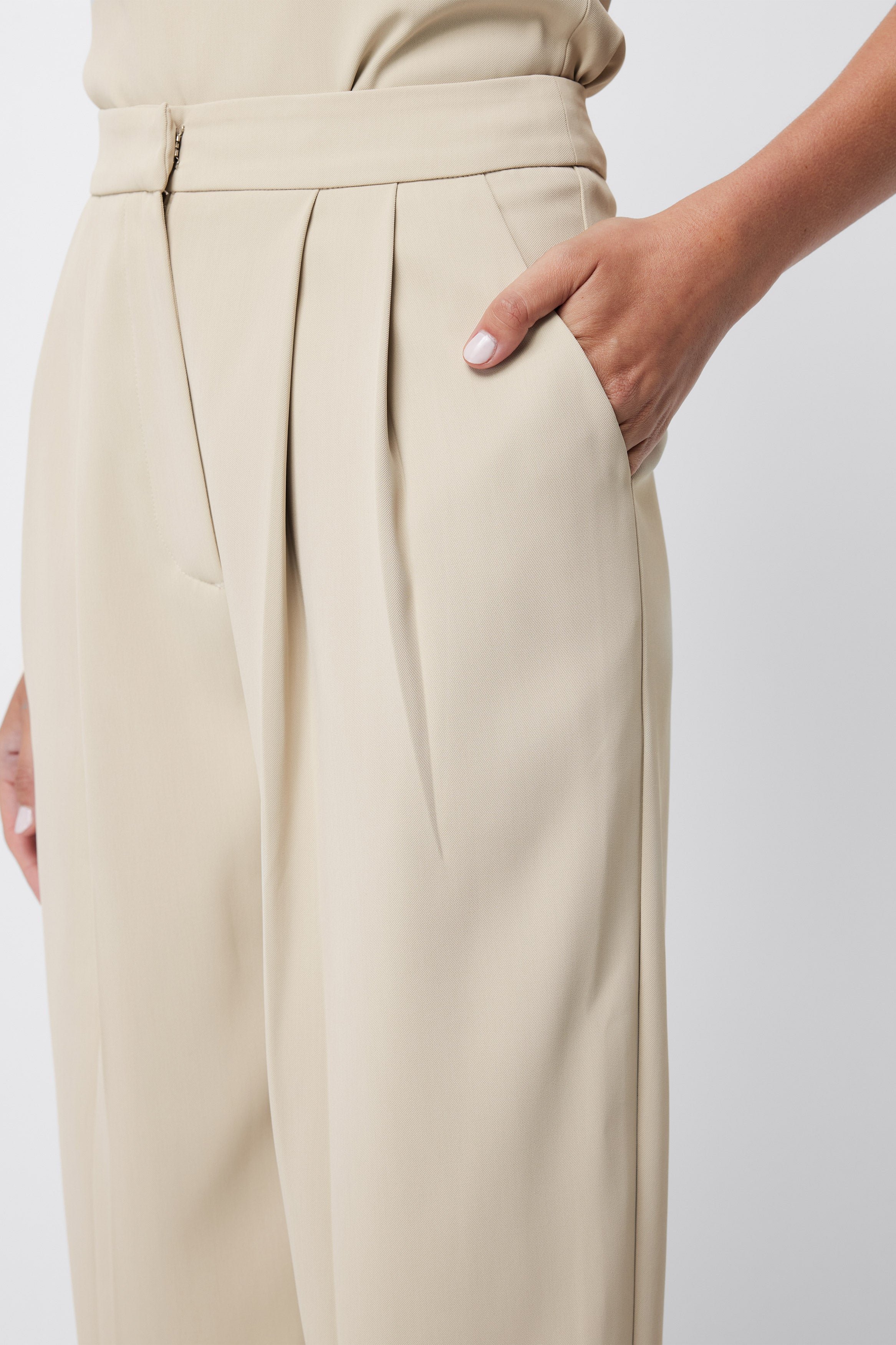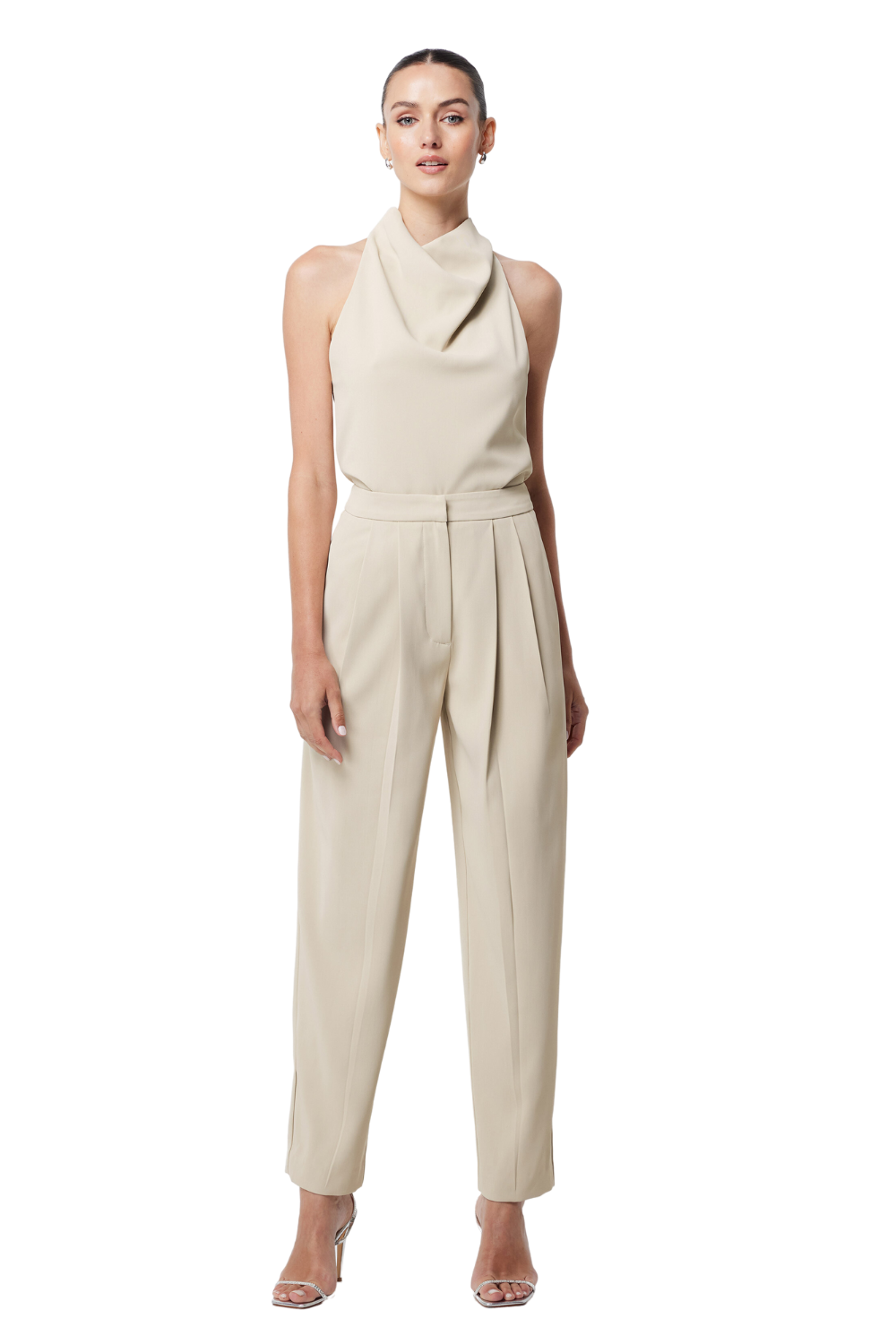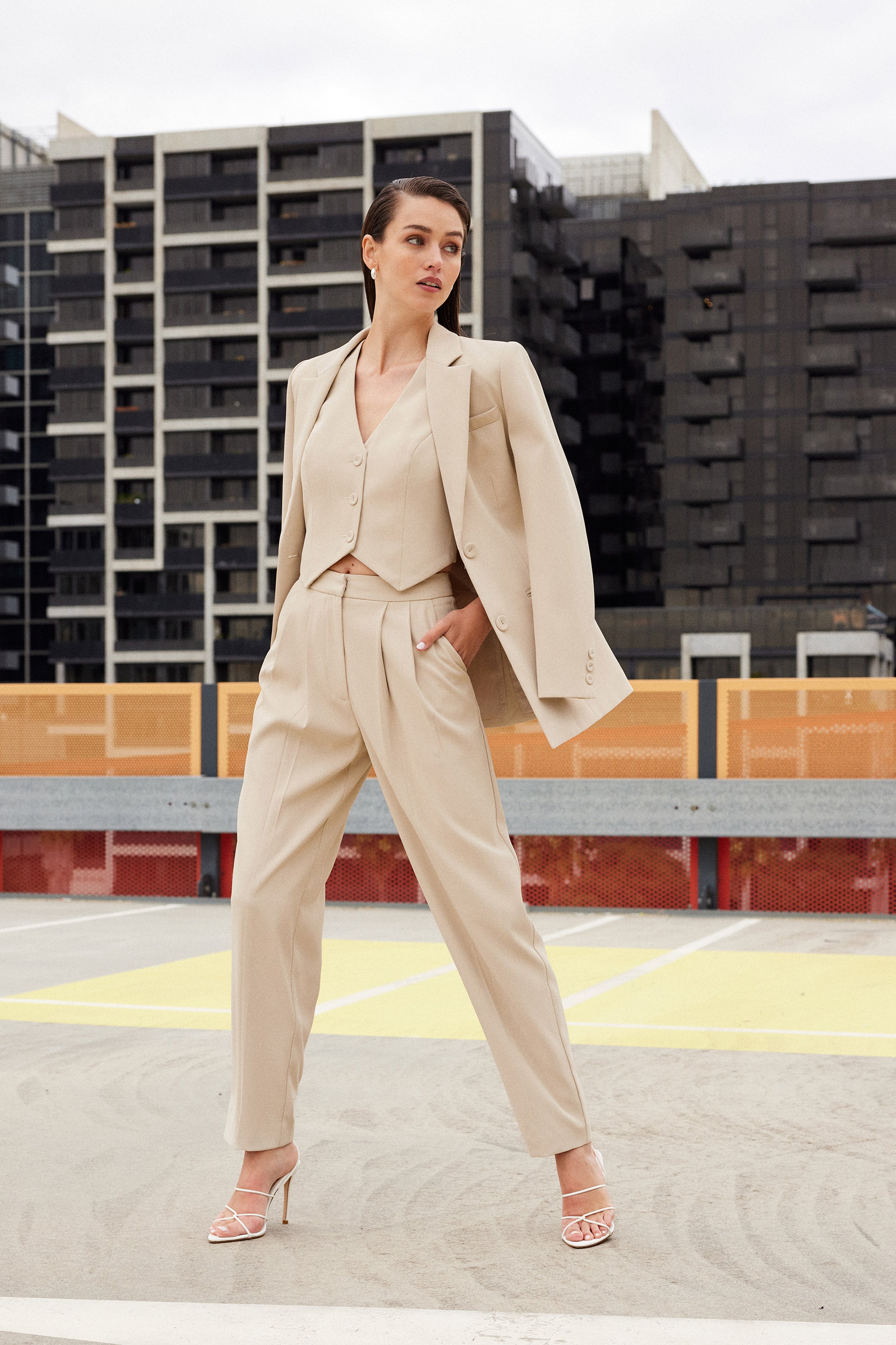 Showcasing a relaxed fit with a slightly tapered leg, this design is a staple for your wardrobe. The Entice Me Pant in natural features a high waist rise, functional side pockets and flattering pleats. Pair with Entice Me Top to take this outfit from desk to dinner.