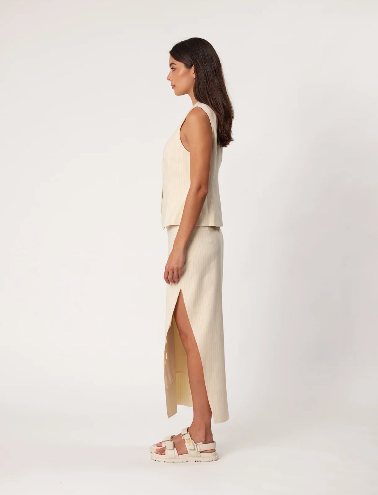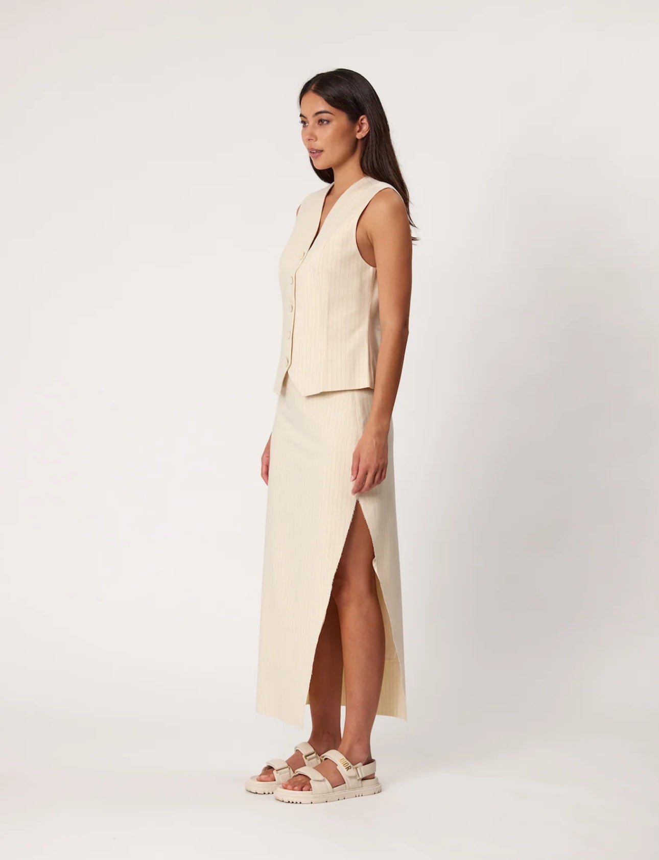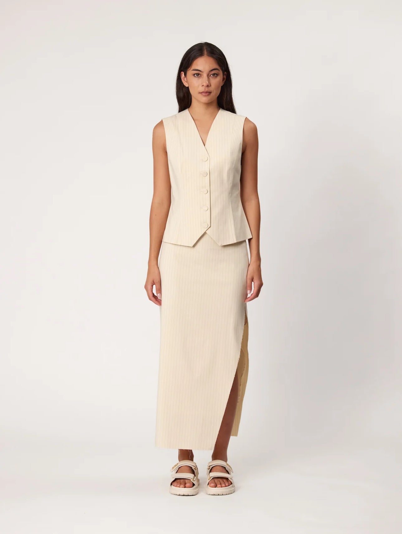 A tailored waistcoat that can be worn on its own or layered for a timeless and polished look. Featuring a flattering shaped waist with a front button up.