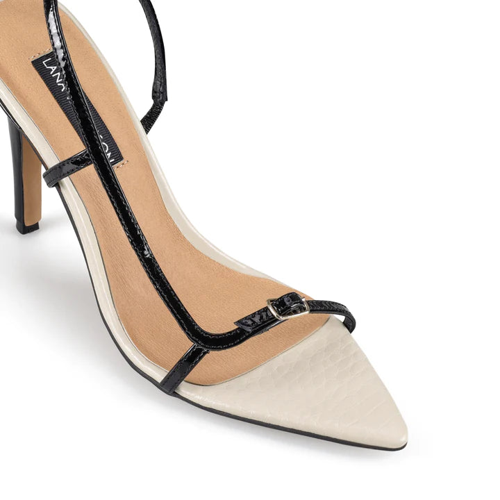 The 'Jacqui' heel is the ’90s-inspired shoe of your dreams. Pair her with your favourite LBD for the ultimate night time look. Available in Black/Cream. Heel height 10.5cm.