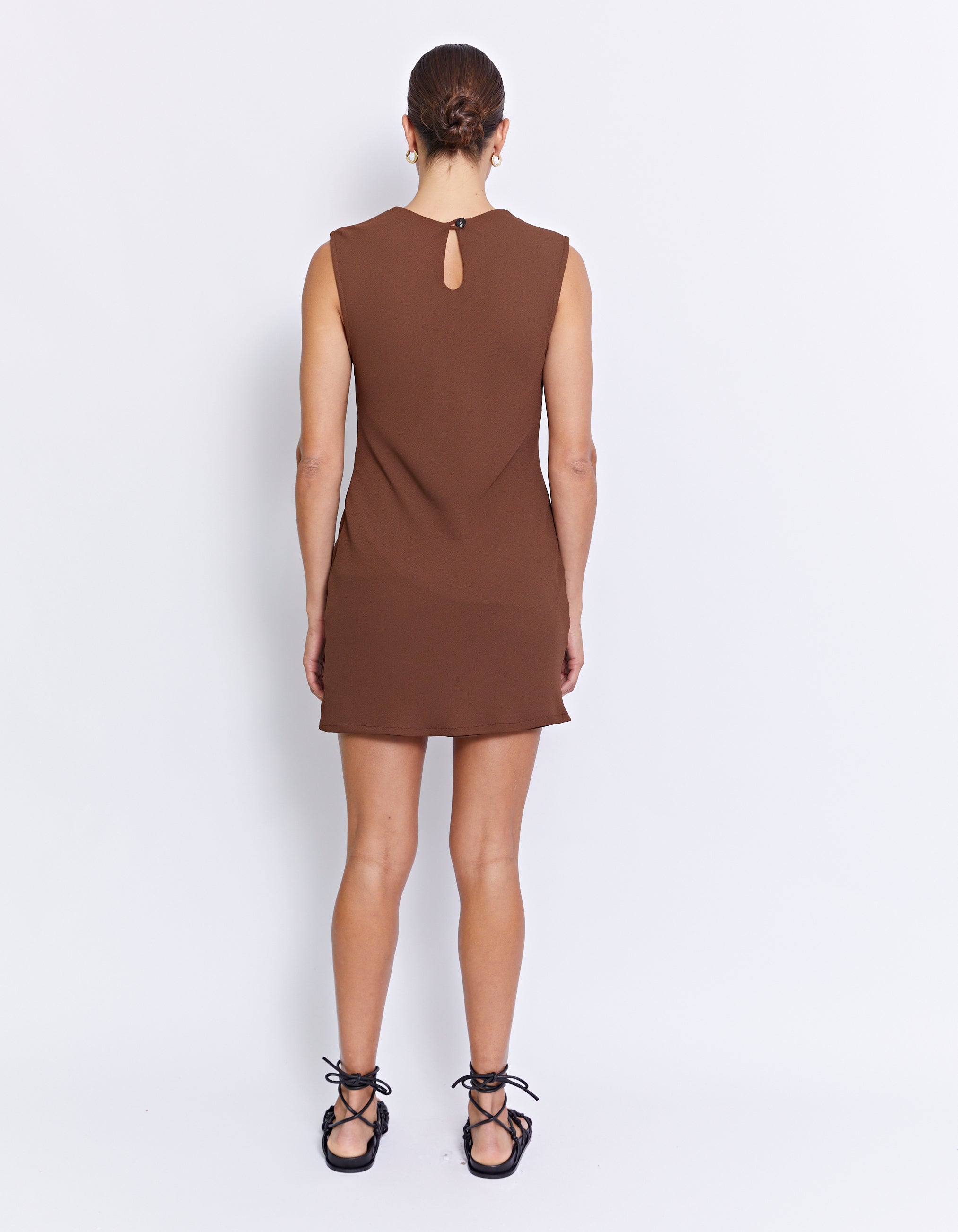 The Kali Mini Dress by Pfeiffer is ethically made in Australia from 100% Polyester Crepe. Sexy meets comfort in this mini dress with tank sleeves and a keyhole front neck detail.