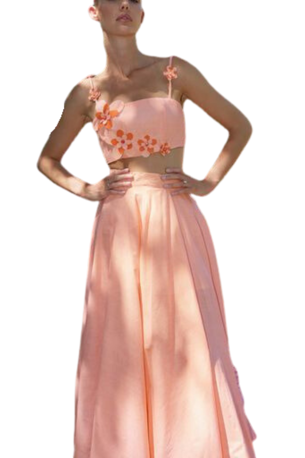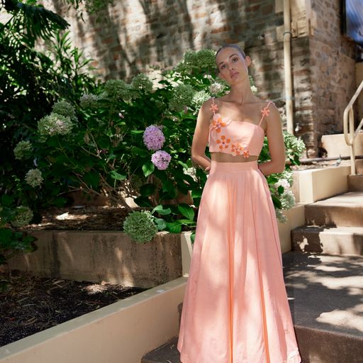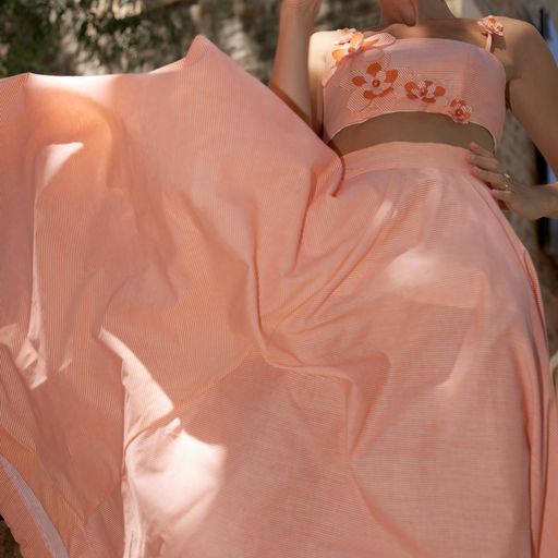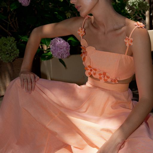 The Mimi Bralette in Nectar Fine Stripe features a 3D flower and bead detail cascading front of bodice and straps, featuring a double bow tie detailing and an open tie back.Style with the Mimi Skirt in Nectar Fine Stripe. The two-piece set is perfect for creating a sophisticated, but relaxed, look. Its lightweight, breathable fabric is designed to keep you comfortable all day long.