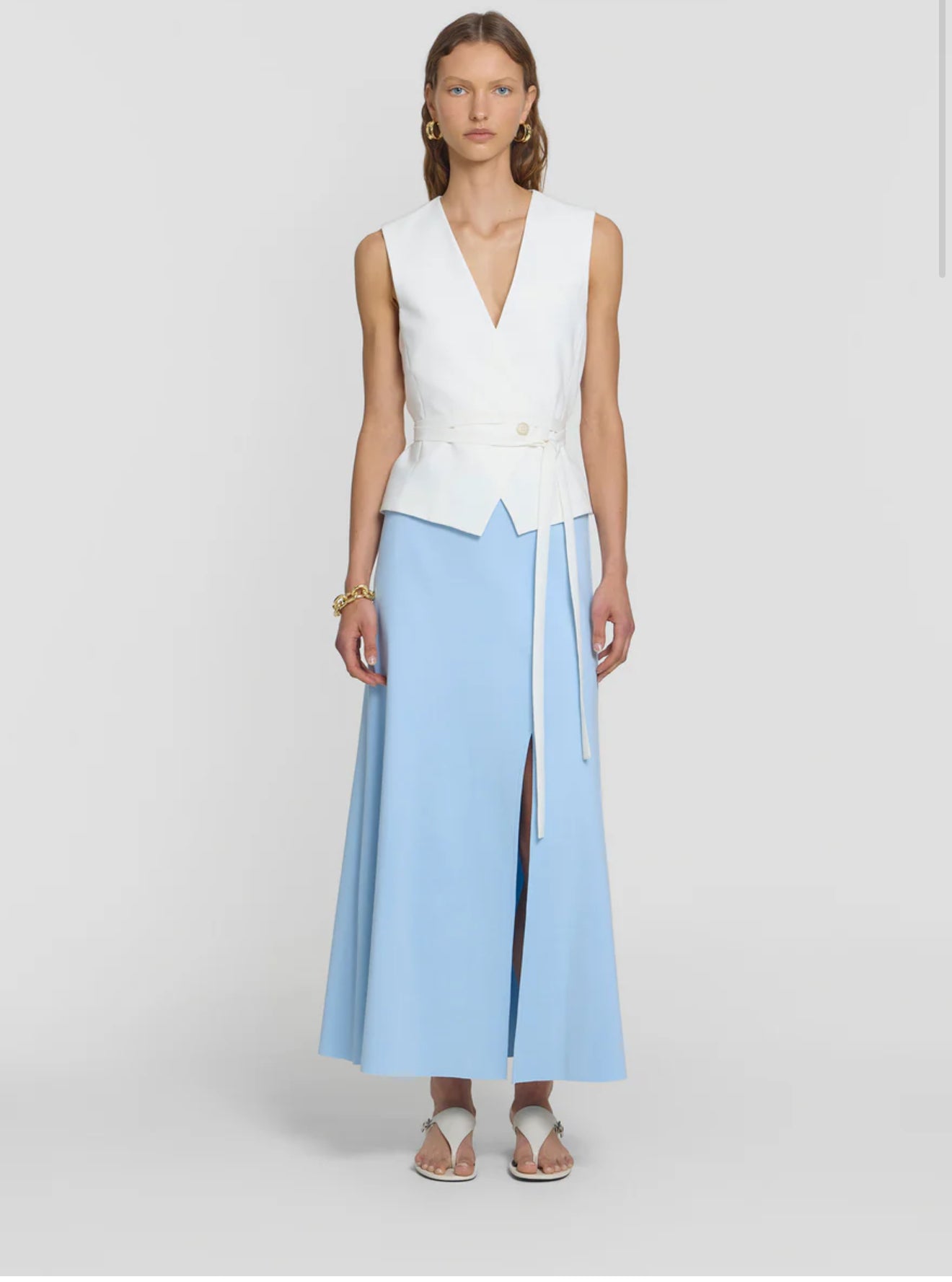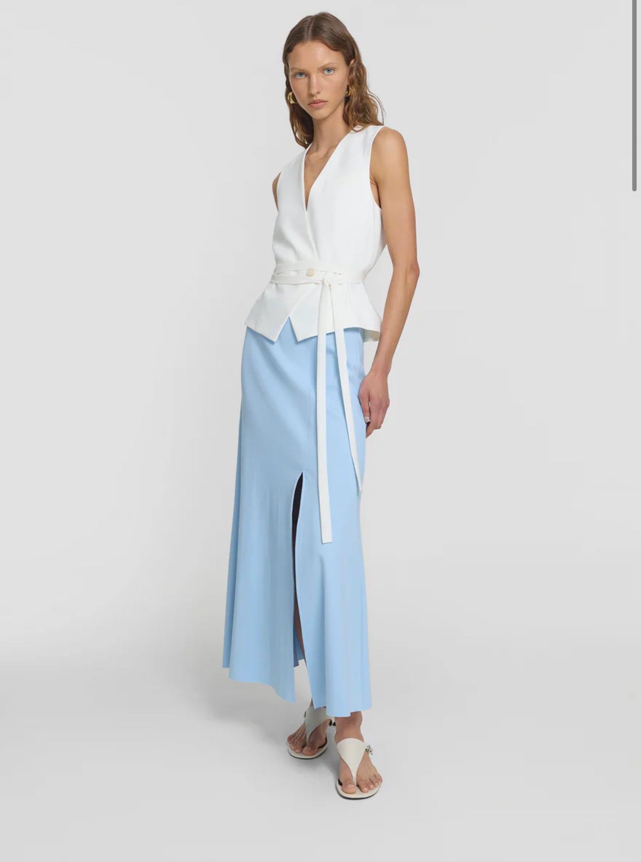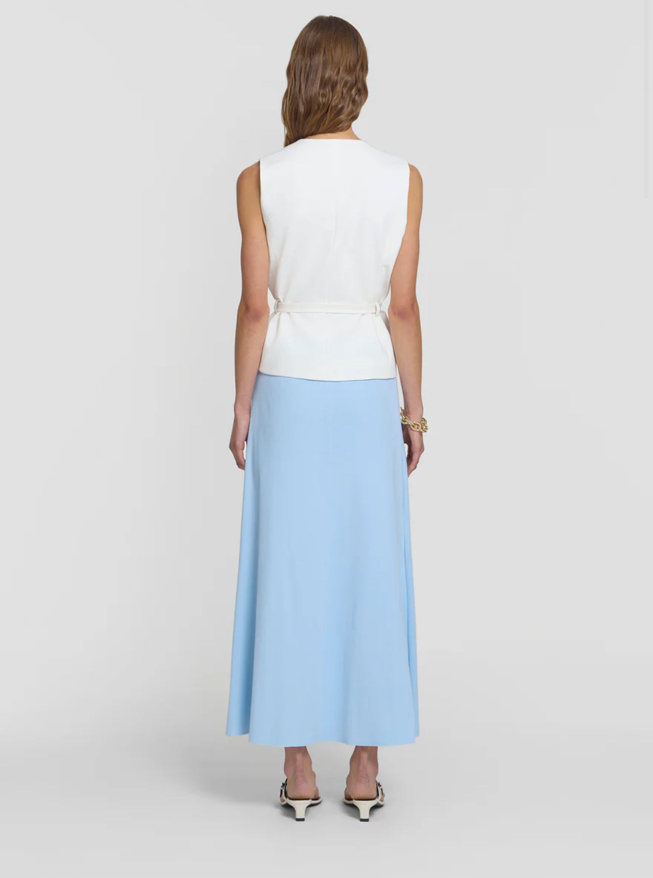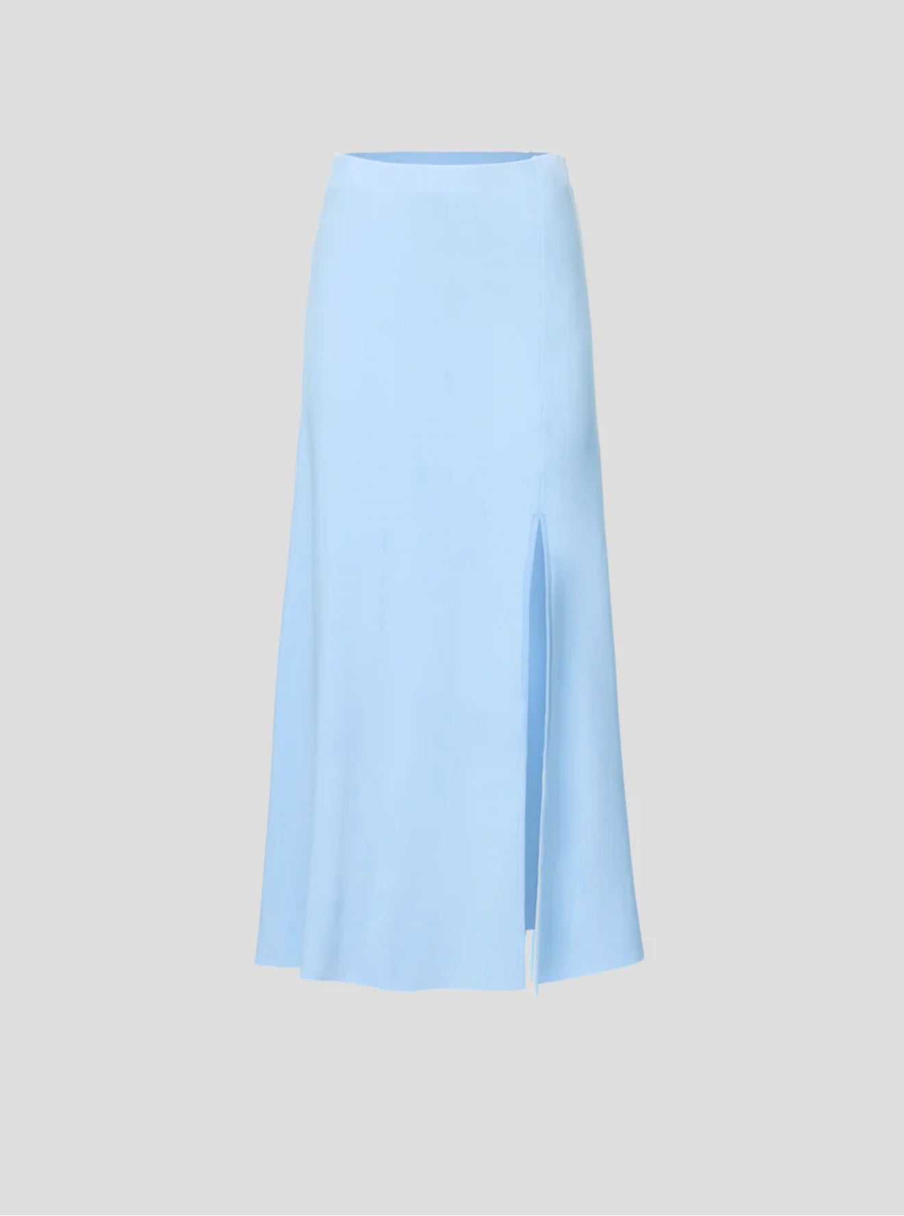 Redefine summer ease with the Seaside Skirt, a midi-length silhouette crafted in soft blue cotton rib. Featuring a relaxed fit, front split, and raw edge hem, it fuses casual ease with refined detail. Pair it with the Rye Top for an elegant summer set or style back with everyday staples for understated sophistication.