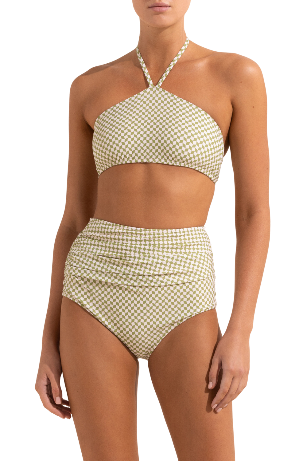 Designed for summer adventures, simplicity with just the right amount of details. The halter neck tie creates adjustable fit.